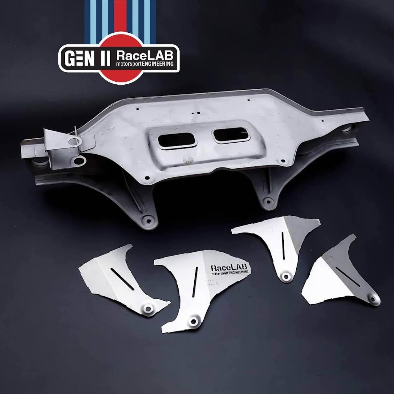 Piastre di rinforzo della culla del differenziale posteriore. Segmenti di saldatura predefiniti, incluso il gioco di saldatura, per ottenere la massima rigidità possibile e la migliore risposta della vettura.